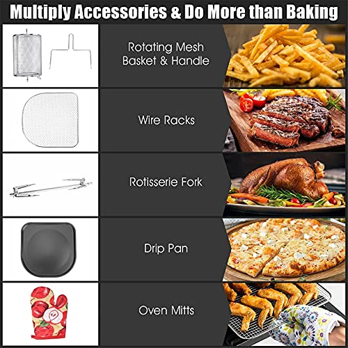 All-in-1 Machine: The ultimate meal making machine is not only an air fryer, but also a rotisserie, dehydrator, pizza grill and oven toaster, it can complete various delicious food, such as roasted chicken wings, chips, pizza, steak and so on; A necessary tool in the kitchen, which can almost meet all requirements for people.